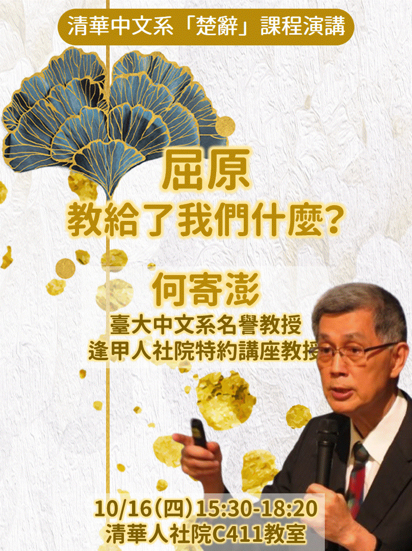 【學術演講】114/10/16(四)「楚辭」課程演講—何寄澎:屈原教給了我們什麼?